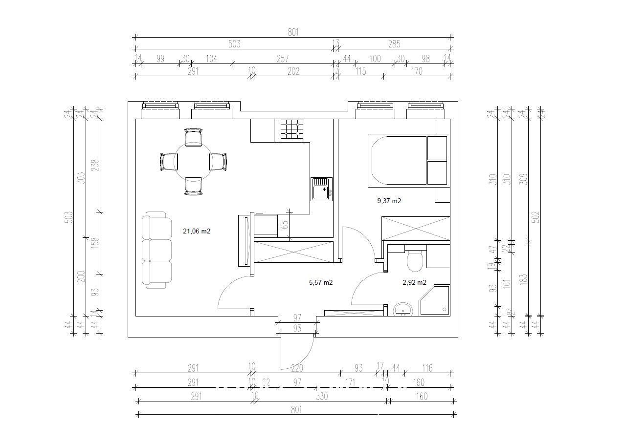 - łazienka 2,92 m2.