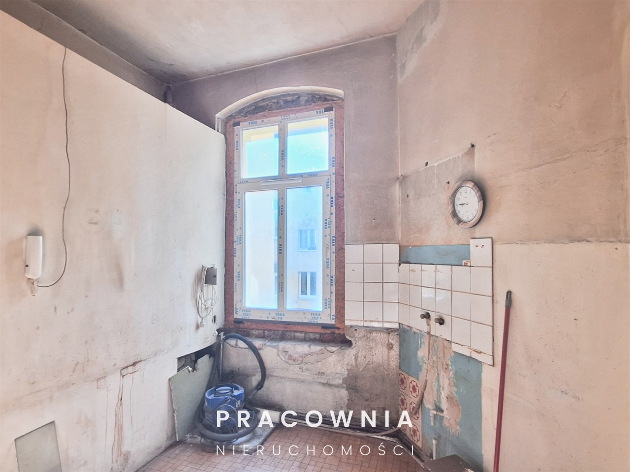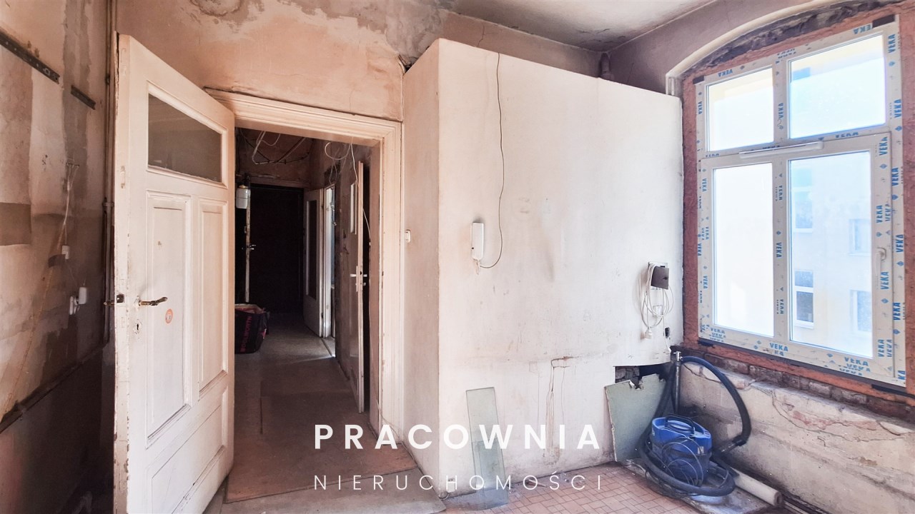 Lokal wymaga gruntownego remontu, co daje szerokie możliwości aranżacyjne.