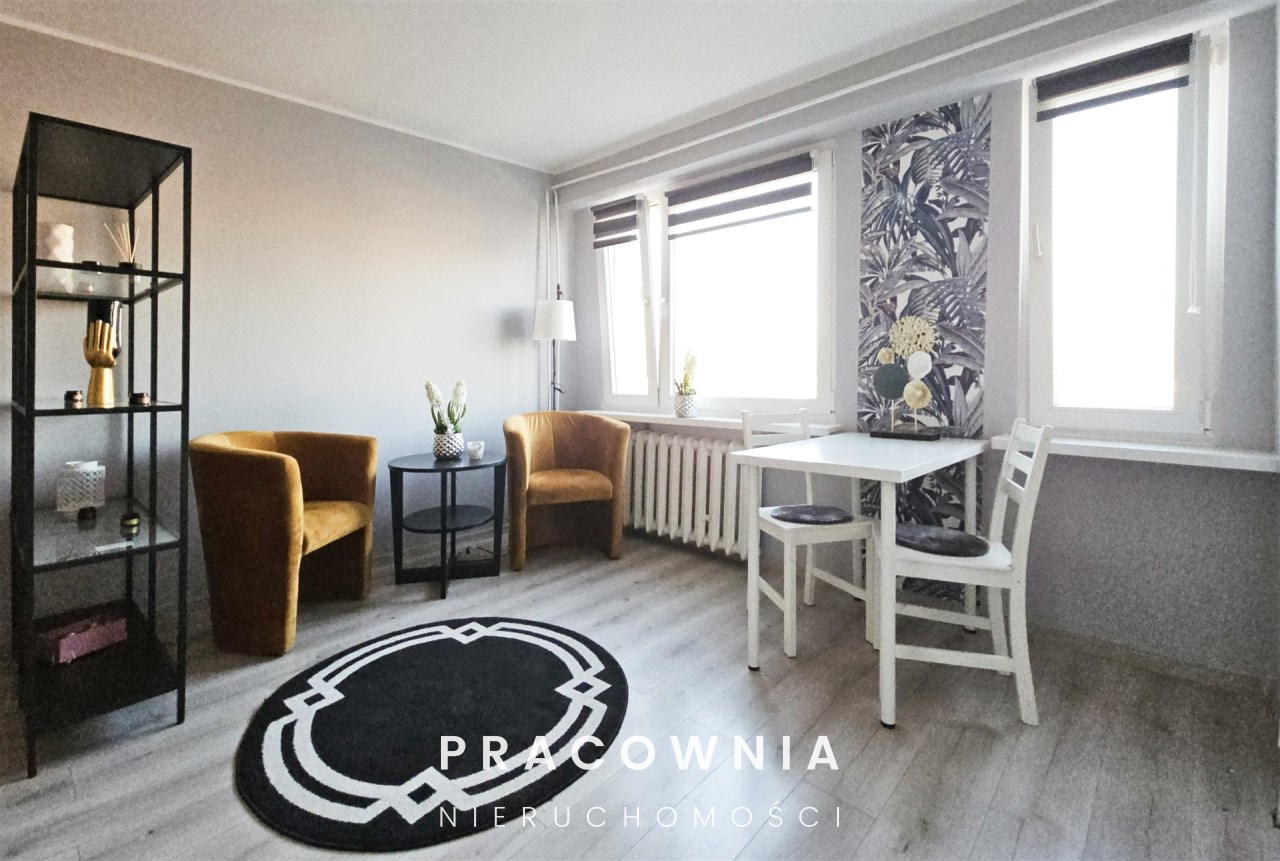 Przestronna kawalerka z oddzielną kuchnią.